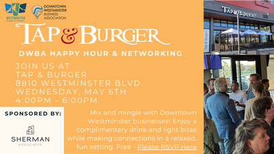 Mix and mingle with Downtown Westminster businesses! Enjoy a complimentary drink and light bites while making connections in a relaxed, fun setting. Free to attend, please RSVP for accurate head count.