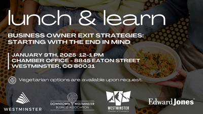 Join us for a Lunch & Learn hosted by Matt Kollmorgen of Edward Jones focused on business owner exit strategies. Learn how to plan with the end in mind, strengthen your succession plan, and position your business for a smooth and successful transition—all while enjoying lunch with fellow local leaders.
