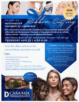 Join us as we officially celebrate the Ribbon Cutting for Cara Mia Dermatology! Help us recognize and spotlight this trusted skincare and wellness destination right here in Westminster and meet the expert team dedicated to helping you look and feel your best.