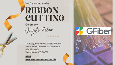 Event Details: Event: Google Fiber Westminster Ribbon Cutting Date: February 19, 2026 Time: 4:00–5:00 PM Location: Westminster Chamber of Commerce