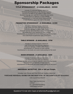 Get your Horse Racing Suits and Hats for the Second Annual Valentines Day Murder Mystery in Support of Tailwinds of Hope!